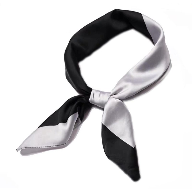 Silk Scarf for Women 90x 90cm Modern and Fashionable Neckerchief Headwear fashionable scarf top Accessory for hair and handbag (Black and Light Grey)