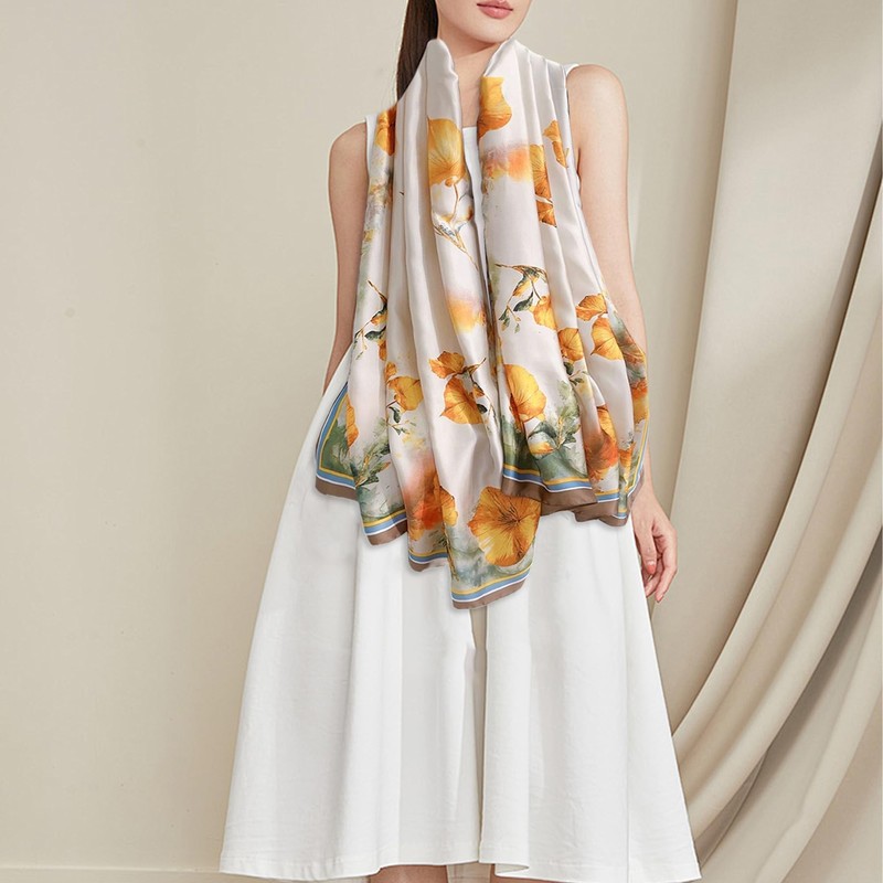 Silk Scarf - Silk Scarf for Women UK, Ladies Satin Scarf, Fashion Scarves for Women,large Floral Silk Scarves, Precious Gift for Women Ladies Girls (YELLOW)