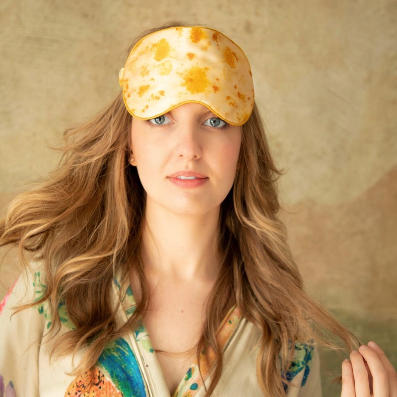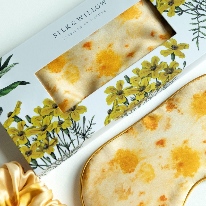Silk & Willow 100% Pure Mulberry Silk Sleep Eye Mask & Hair Scrunchie Gift Set (Marigold Yellow)