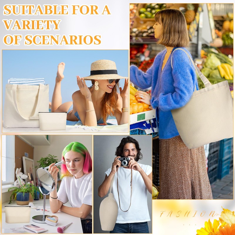 - Fun for DIY: both of the large canvas tote bag for women and the beige makeup bag have blank surface, which is ideal for DIY, so that you can paint, graffiti, write, embroider, heat transfer or sublimate your favorite patterns on the canvas bags, DIY your own bags and make them one of a kind, interesting and attractive
