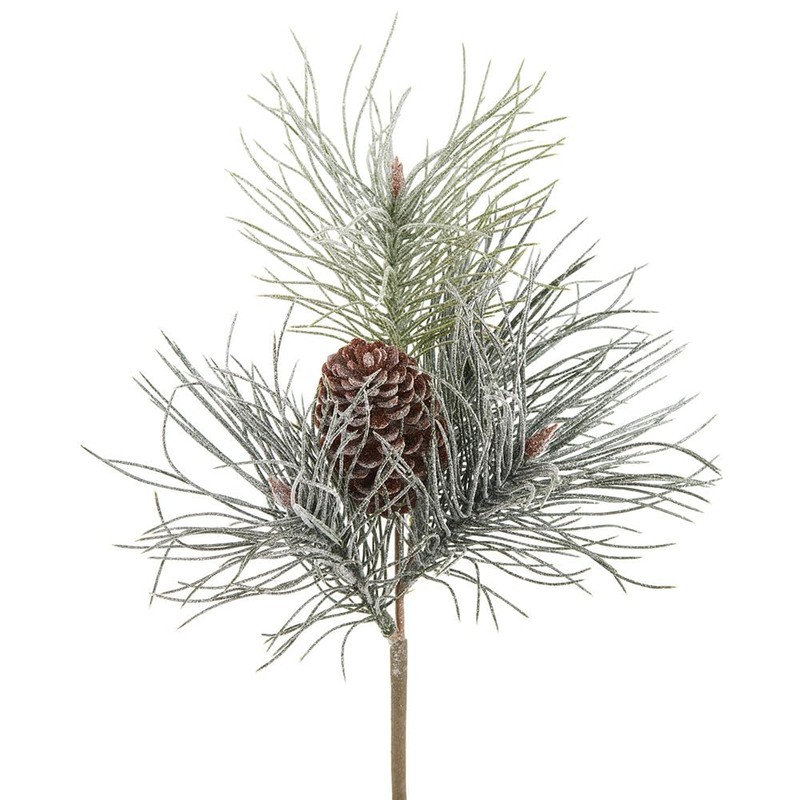 SilksAreForever 14" Snowed Long Needle Pine & Pinecone Artificial Stem Pick -Brown/Green (Pack of 12)