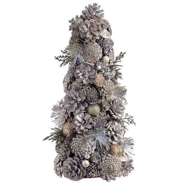 SilksAreForever 16" Glittered Pinecone, Ball & Pine Artificial Cone-Shaped Topiary -Champagne (Pack of 4)