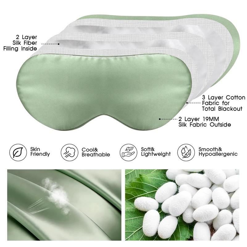 - Mulberry silk sleep mask is naturally breathable and feels soft against the skin. The two-layer silk fibre filling inside and the oversized design on the front 21 L x 10.5 W cm ensure complete light blocking, even in bright colours.
