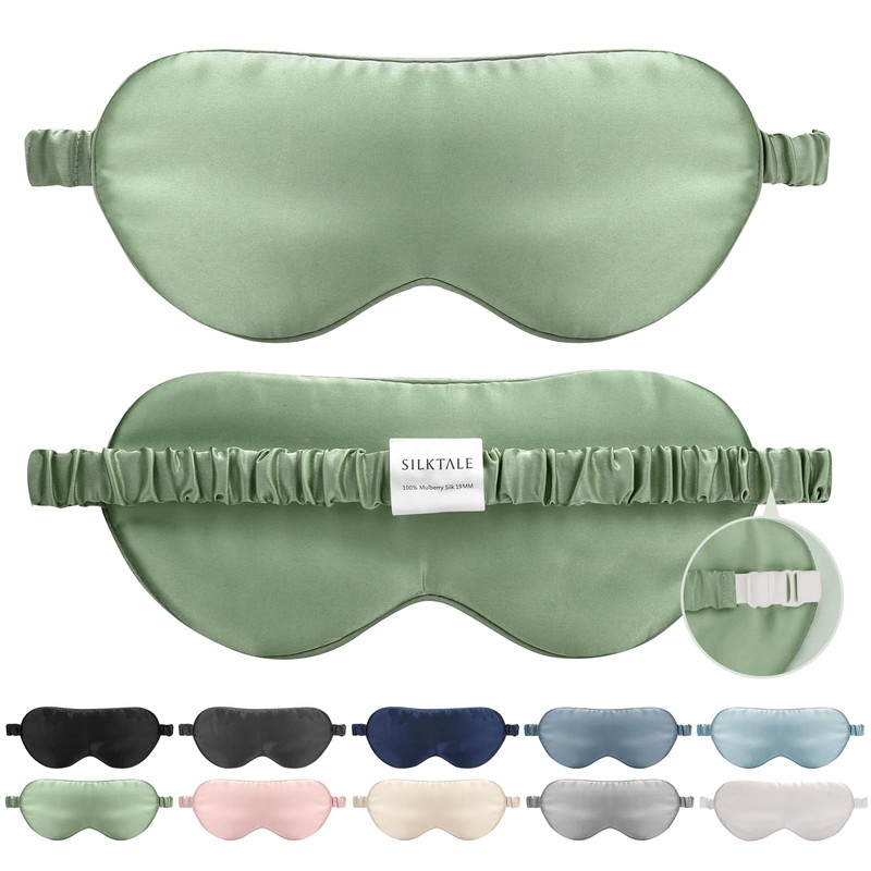 SILKTALE Silk Sleep Mask for Men and Women, 19 Momme 100% Mulberry Silk Eye Mask for Side Sleepers, Breathable Silk Sleeping Mask, Comfortable with Adjustable Elastic Band for Airplane, Sage Green