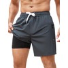 SILKWORLD Swim Trunks for Men Compression Lined Swimsuit 6 in Swimming Shorts Quick-Dry Bathing Suits with Zipper Pocket, Charcoal Grey, Large