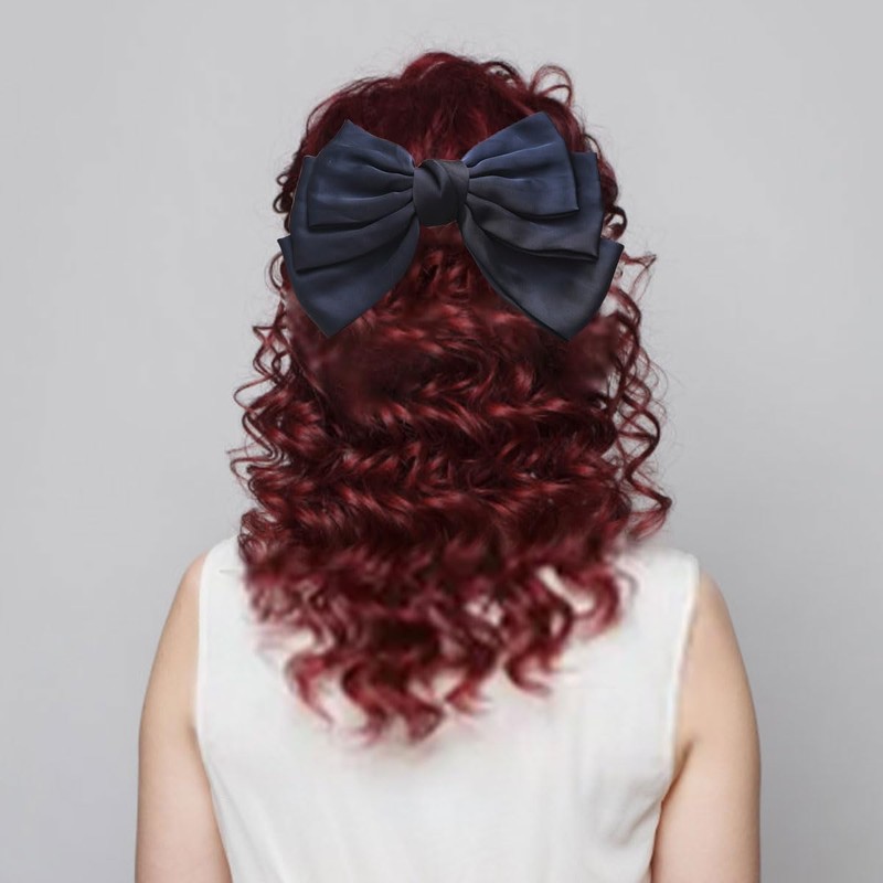 Silky Big Bow Hair Clip - Soft Satin Hair Ribbon Ponytail Holder Accessories Slides Metal Clips Hair Bow for Women Girls 28107