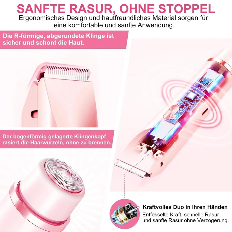 - Functional variety – 2-in-1 dual head design: our electric women's razor with 2 in 1 dual head design offers an extraordinary shaving experience. With this versatile device, you can easily switch between precision shaving in sensitive areas such as the bikini area and the brisk body shaving on legs, arms and armpits. No more annoying blade changes - all in one device