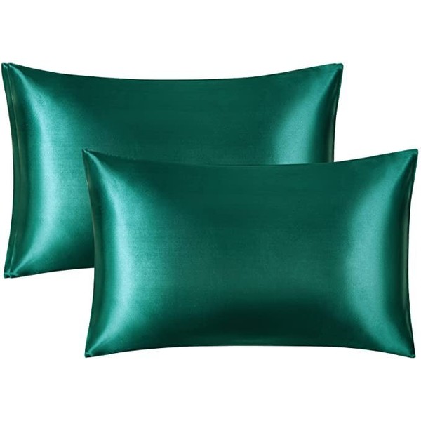 Silky Satin Standard Pillowcases Set of 2, Super Soft and Luxury, Hidden Zipper Design (Teal, King (20" x 36"))