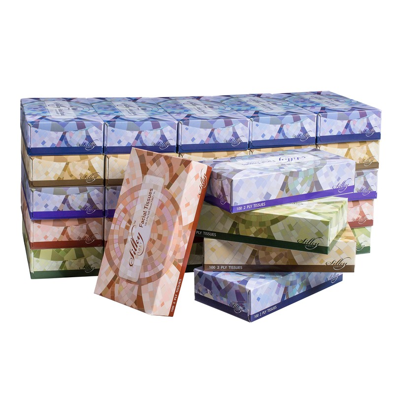 Let your hotel or restaurant guests have quick access to Silky 2-ply facial tissue box. Thanks to its compact size, this tissue box fits on your restroom's countertop, bedside night stand, front desk, and more. Plus, the flat rectangular shape enables you to stack several boxes for compact storage in your supply closet. Its perforated top ensures your tissues remain sanitary and untouched until ready to use. Add these gentle Silky Soft 2-ply tissues to your business or home for convenience and quality