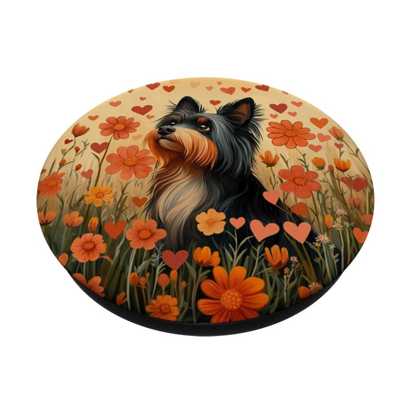 Silky Terrier Hund Blumen mit Herzen rund um Boho Grafik PopSockets mit austauschbarem PopGrip