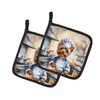 - Full color Pair of decorative Pot Holders to match your kitchen decor. Each set of potholders contains two potholders that measure 7 1/2 inches by 7 1/2 inches and has a hanger sewn into one side.
