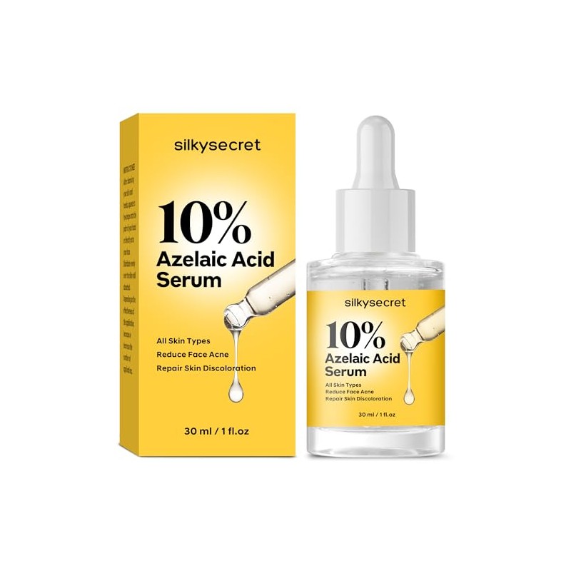 Español Suero con ácido azelaico al 10 % SilkySecret: el mejor tratamiento para el acné, el enrojecimiento y la minimización de los poros El suero con ácido azelaico al 10 % SilkyShark es un tratamiento multifuncional diseñado para atacar el acné, reducir el enrojecimiento y minimizar la apariencia de los poros. Este suero actúa para mejorar la textura y el tono de la piel, proporcionando resultados visibles para la piel sensible y propensa al acné. Con un 10 % de ácido azelaico, es ideal para reducir los puntos negros, los brotes de rosácea y otras imperfecciones cutáneas comunes. La inclusión de niacinamida e hialuronato de sodio garantiza que la piel se mantenga hidratada y calmada sin obstruir los poros ni causar irritación. Ingredientes y beneficios estrella: Ácido azelaico: este ácido natural es famoso por su capacidad para combatir el acné y la rosácea. Actúa exfoliando la piel, destapando los poros y reduciendo la inflamación. El ácido azelaico también ayuda a atenuar las cicatrices posteriores al acné y la hiperpigmentación, lo que le da a la piel un tono más claro y uniforme. Niacinamida: