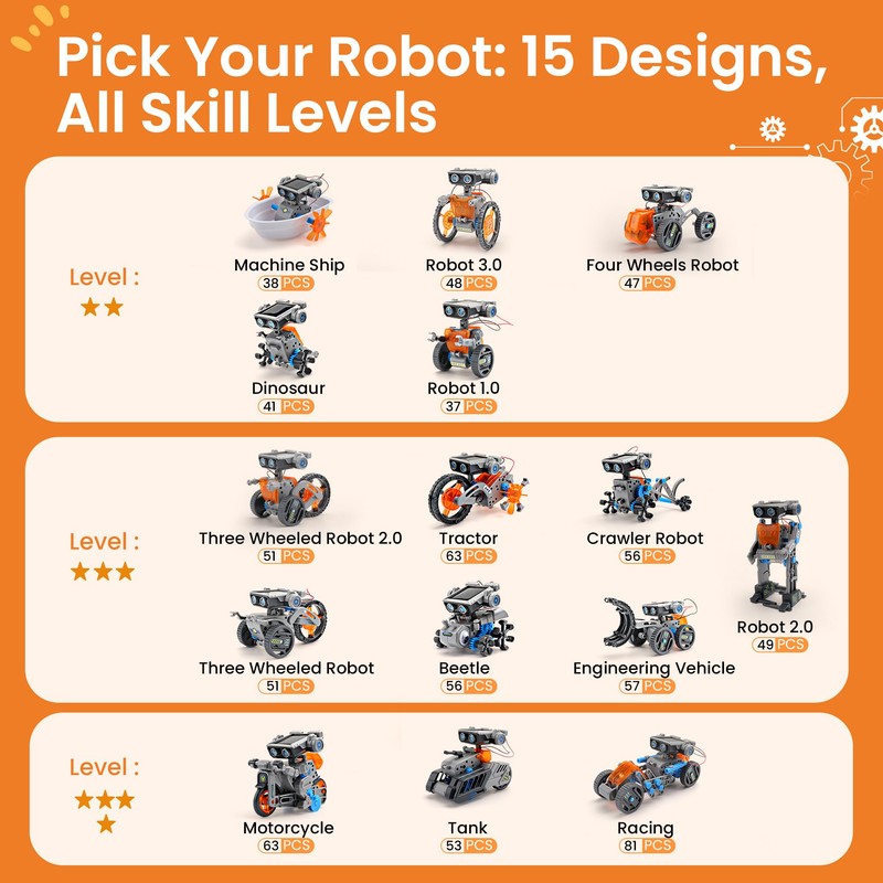 Sillbird Solar Robot Building Kit STEM Gift for Boys Aged 8-13, 15-in-1 DIY Science Educational Robotic Toy for Kids Teens Birthday, Powered by The Sun or Battery with 212 Pieces