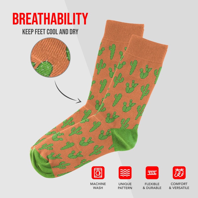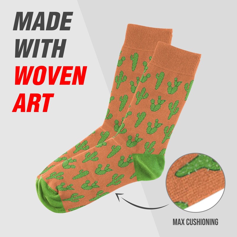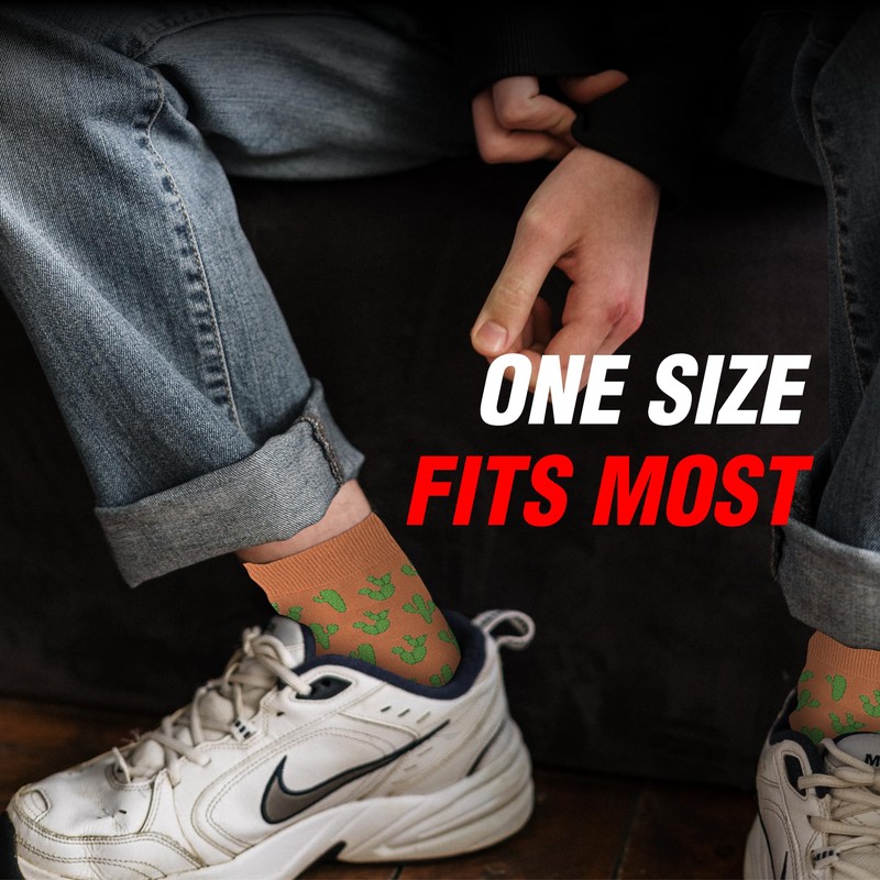 - Silly Socks: Embrace your playful side with these silly socks, adorned with charming cactus artwork. Designed to fit most sizes (8-13), they're the perfect goofy socks for men and women alike.