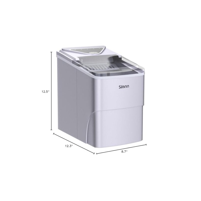 - SELF-CLEANING & PORTABLE: Simply press the ON/OFF button for 5 seconds to start the self-cleaning process. The machine will circulate the water that is poured into it. Silonn's ice maker is compact with dimensions of 12.3 x 8.7 x 12.5 inches.