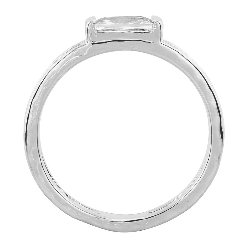 - This petite sterling silver band ring features a dainty baguette cut cubic zirconia stone center and split band, perfect for stacking and adding a hint of detail to your outfit. With its elegant design, you'll want to wear it for any casual or formal events. Make this your next go-to ring. Piece comes with a ".925" sterling silver quality stamp as a symbol of guaranteed product quality.