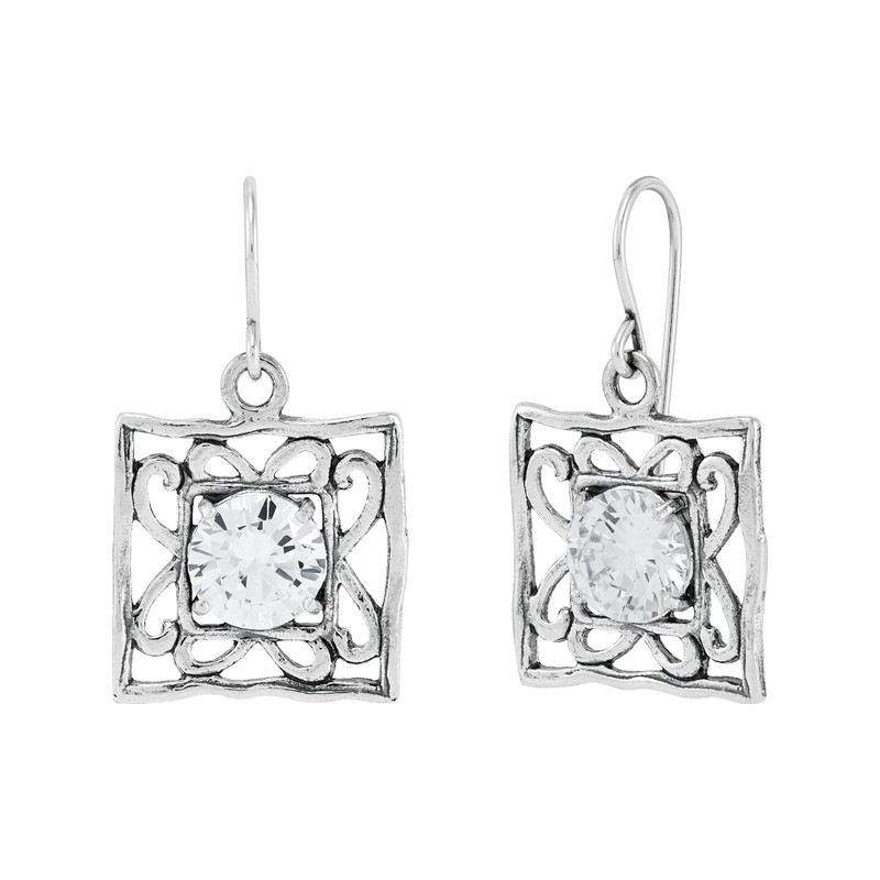 Silpada 'Center Squared' Sterling Silver White Cubic Zirconia Drop Earrings