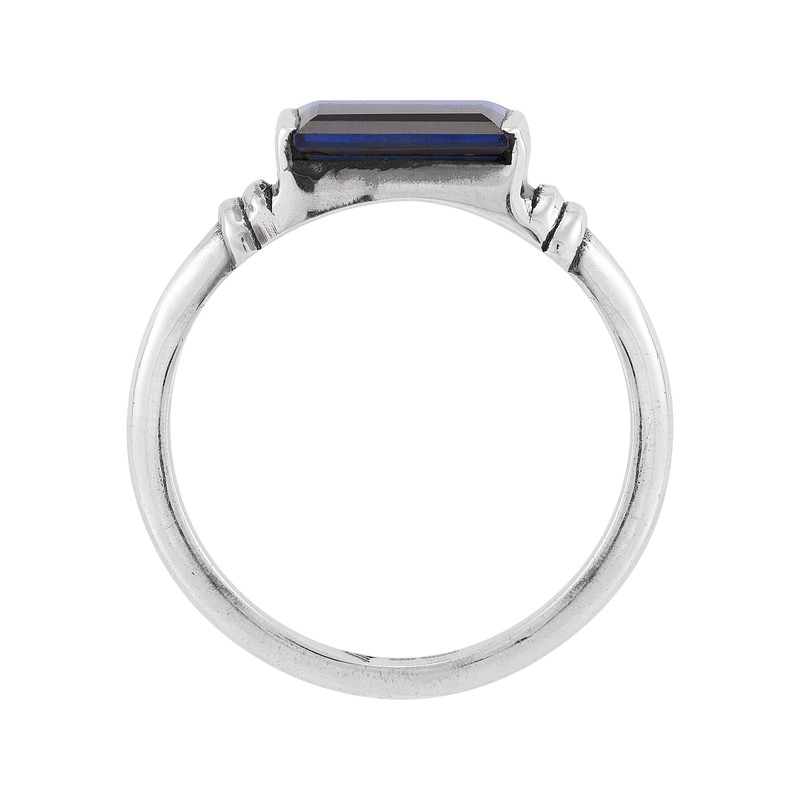 - Steeped in a deep blue color reminiscent of the Mediterranean Sea, this ring will whisk you away every time you slip it on. Its bright lab-created sapphire sits horizontally on a thin silver frame. Stack it with other simple styles for a pop of color. The piece comes with a ".925" sterling silver quality stamp as a symbol of guaranteed product quality.
