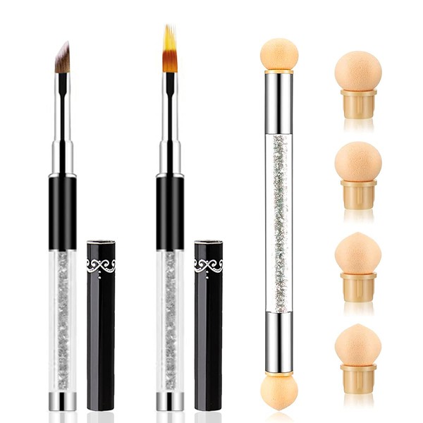 - PERFECT COMBINATION - 2Pcs acrylic nail gradient shading brush + 1pc double head nail sponge pen + 4pcs replaceable sponge heads.