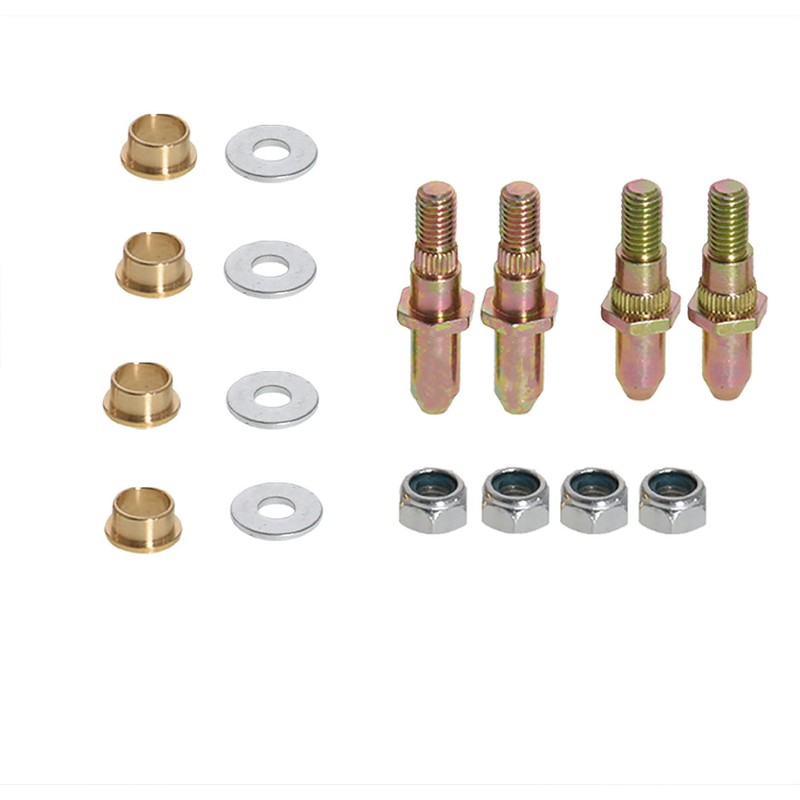 - Package includings - 4 x Zinc plated steel door hinge pins;4 x Door bushings;4 x Flat Washers;4 x Locking Nuts