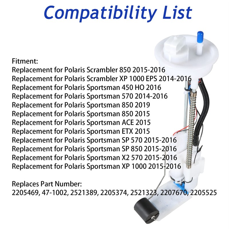 Silscvtt Fuel Pump Replacement for Polaris Scrambler 850 1000 Replacement for Polaris Sportsman 450 570 850 1000 XP 2014-2016 2205469 2205525 2205374