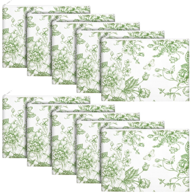 SilTriangle 10 Pcs Floral Makeup Bags with Zipper Canvas Cosmetic Bags Bulk for Women Pencil Bag Travel Toiletry Pouch Gift for Health Nurse Mother Teacher(Green)