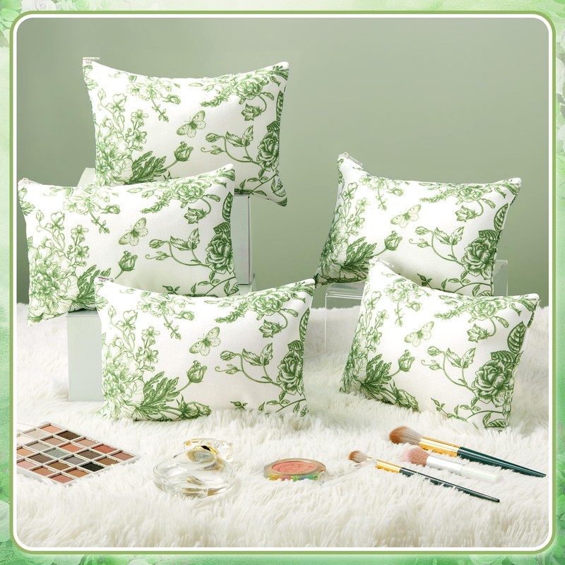 - What You Can Receive: 10 canvas cosmetic bags will be provided in the package; The green and white floral pattern interprets the Chinese style very well, which can meet your needs and can be shared with family, friends and colleagues