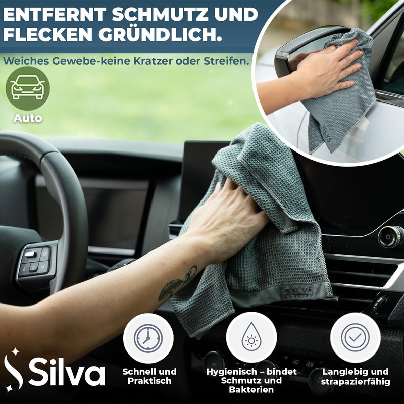 - ✅[Premium-Qualität & großes Format]: Das Silva Mikrofasertuch (40 x 70 cm, grau) überzeugt mit verdicktem Mikrofilamentgewebe für maximale Saugkraft und Langlebigkeit.