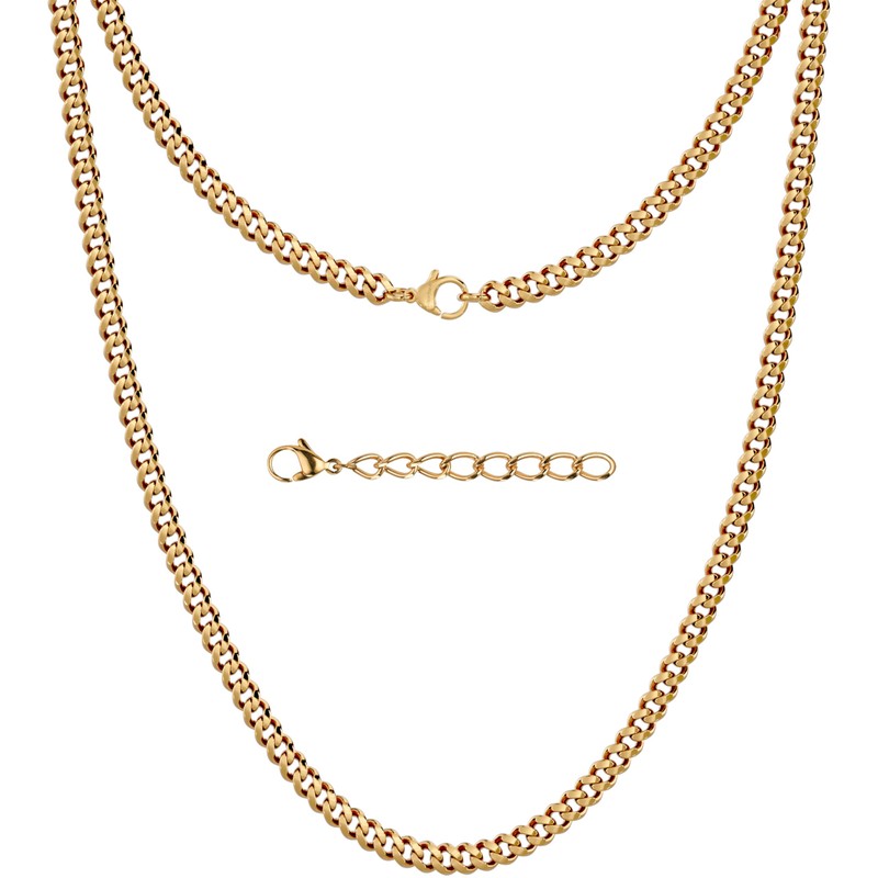 Silvadore 4mm Gold Chain Men Necklace - Real 18k Plated Stainless Steel CUBAN Link Jewellery - NON-TARNISH & Waterproof - 46cm / 18 inch (Velvet Pouch)
