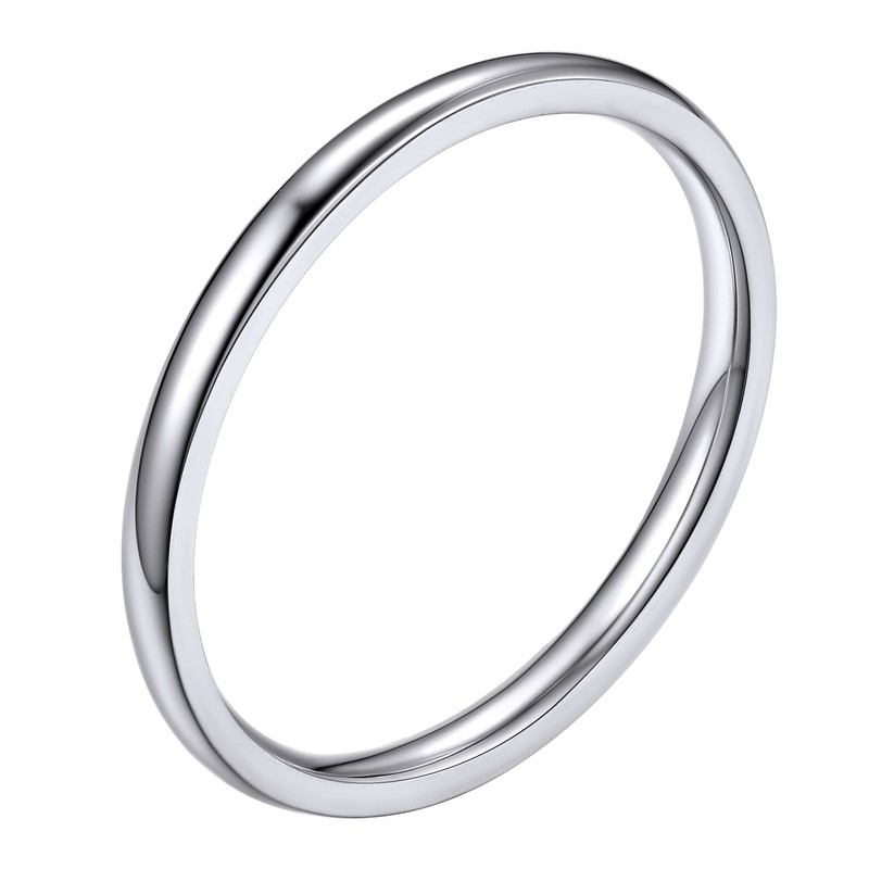 Silver 2MM Midi Plain Ring for Women Stainless Steel Simple Band Rings Thin Rings Stackable Size S US 9