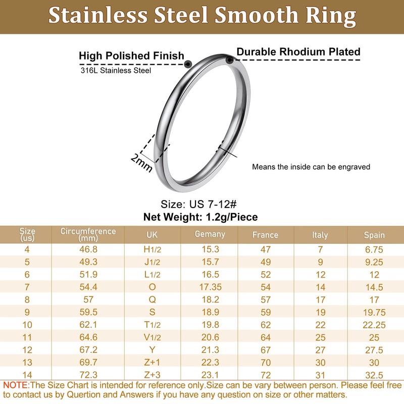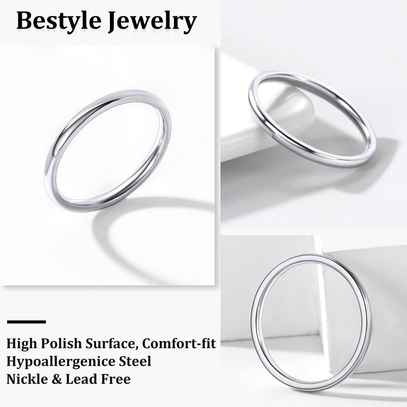Silver 2MM Midi Plain Ring for Women Stainless Steel Simple Band Rings Thin Rings Stackable Size S US 9
