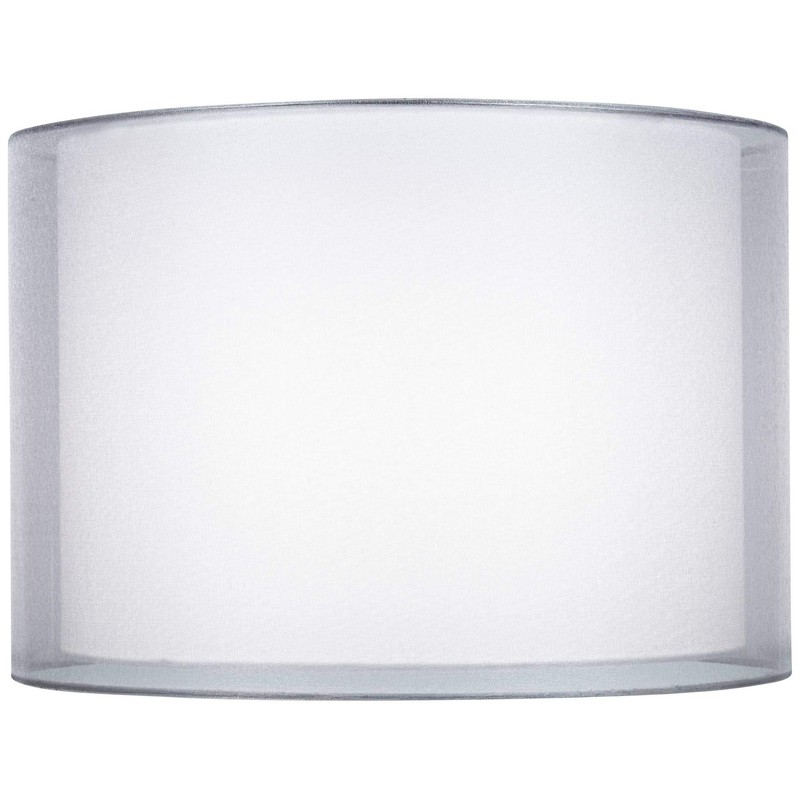 Silver and White Double Sheer Large Drum Lamp Shade 16" Top x 16" Bottom x 11" High (Spider) Replacement with Harp and Finial - Springcrest