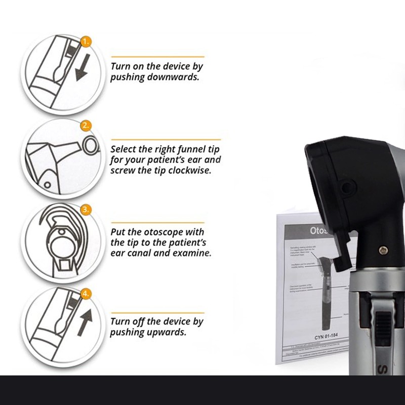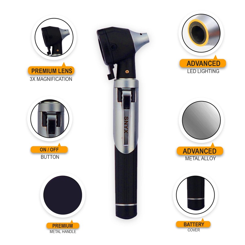 Silver Black Otoscope Ear Scope with Light, Ear Infection Detector, Pocket Size