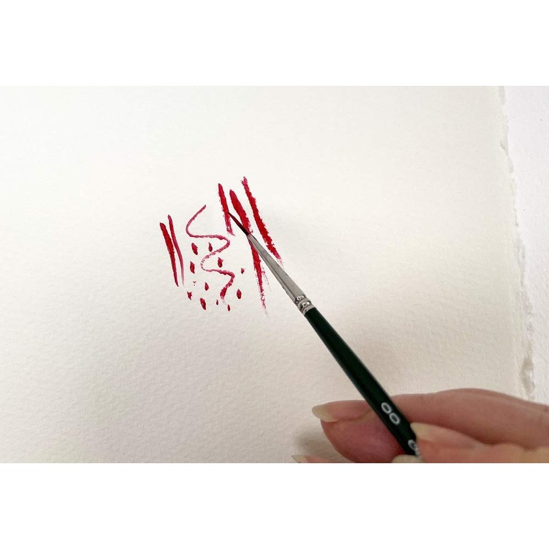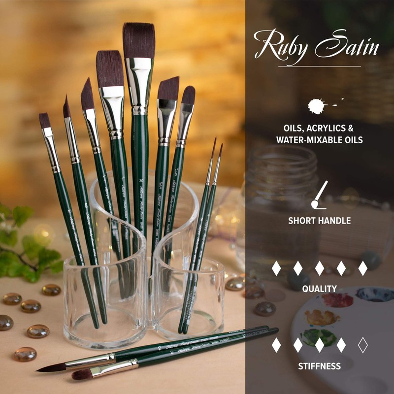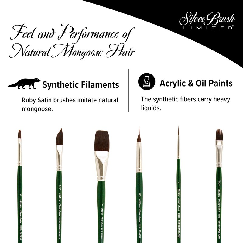 Silver Brush Series 2522S Ruby Satin Monogram Liner Brush with Short Handle, Stiff Synthetic Filaments, Hunter Green, Size 2/0