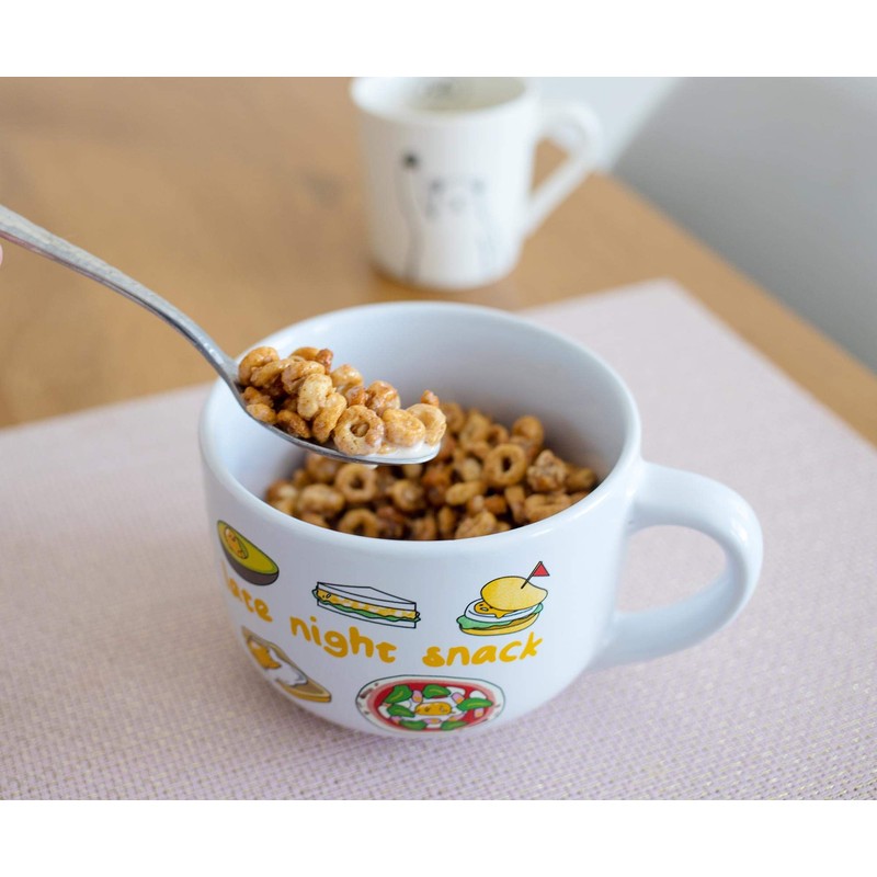 - Taza de sopa: Disfruta de esta taza de sopa de cerámica Gudetama de 710 cc con una tapa ventilada. Esta taza cuenta con Gudetama y algunos deliciosos bocadillos nocturnos Guarda fácilmente tu sopa extra con esta taza de sopa con una tapa