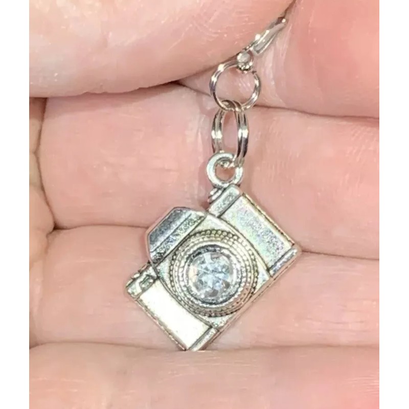 Brand New!!! U.S.A. Seller!!! Silver Camera Crystal Clear CZ Charm Zipper Pull & Keychain Add On Clip!!
