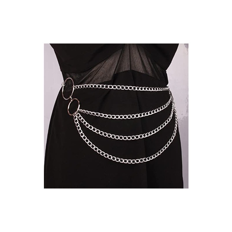 Silver Chain Belt for Women Multilayer Link Waist Belts Layered Belly Chains ...
