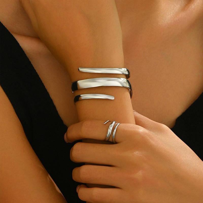 - silver bracelet and ring set:You will get a trendy wide bangle bracelet and a band ring.These chunky silver cuff bracelet and snake ring feature a thick, wide bangle design that exudes confidence and sophistication