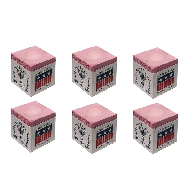 Silver Cup Set of 6 Pink Billiard Pool Cue Chalk