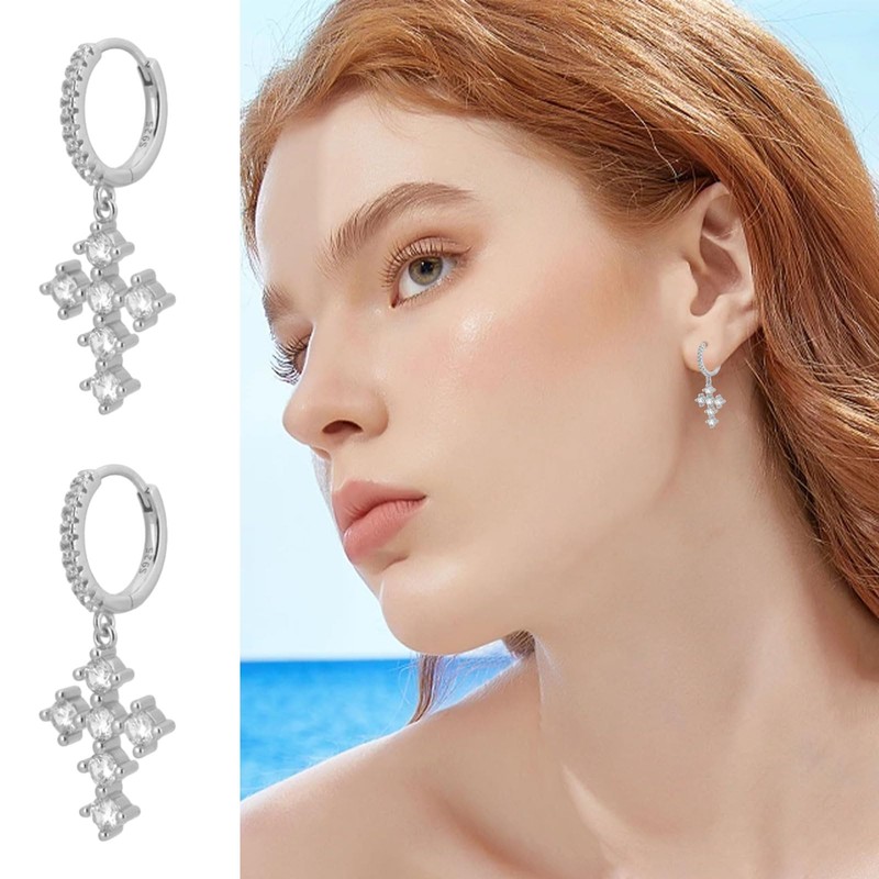 Silver Dangle Hoop Earrings for Women, S925 Sterling Silver Cross Drop Hoop Earrings, Dainty Drop Dangle Huggie Cartilage Earrings for Christmas Valentine's Day Birthday Mother's Day Gifts