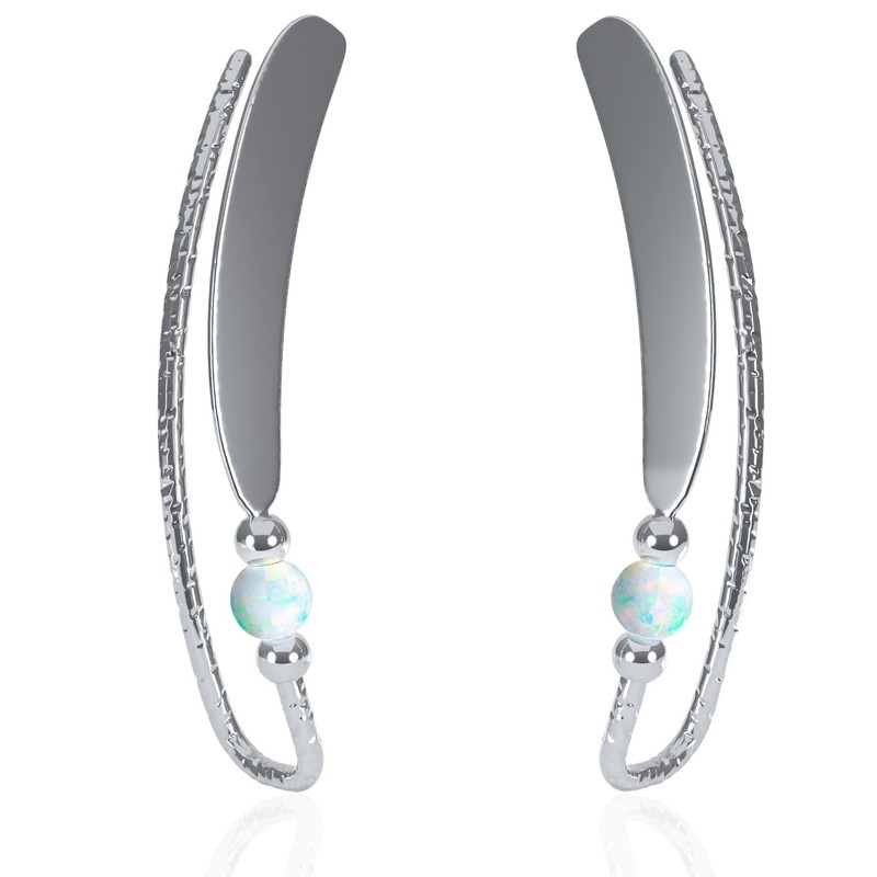 Silver Ear Climber Earrings - Stud Ear Cuff Earrings - Climber Piercing Ear Ring (Silver, White Opal)