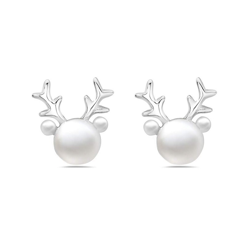 Silver Empire Fine Jewelry | 925 Sterling Silver with Freshwater Pearl Reindeer Stud Earring for Women | Durable & Lightweight | E Coat Finish for Tarnish Resistance | Post Back | Hypoallergenic