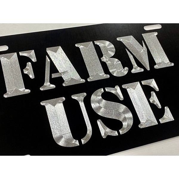 Silver Engraved Farm Use Black Car Tag Diamond Etched Metal Front License Plate