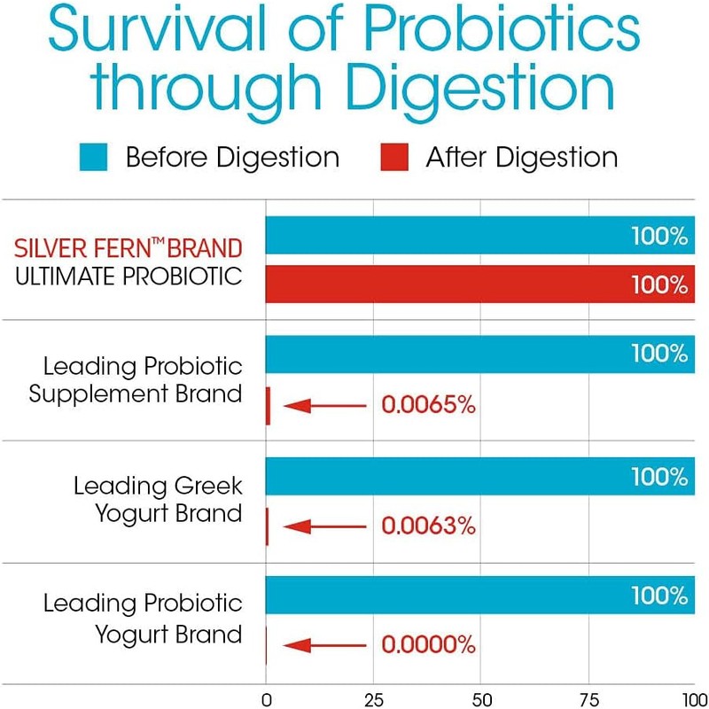 - 100% guaranteed survivability - most probiotics simply don't work because they die in your stomach acid. Silver Fern strains survive and will make it to your gut to restore the balance of your gut bacteria