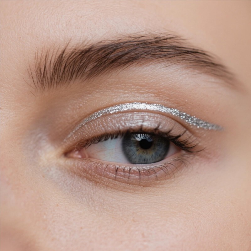 3.Carefully apply the silver glitter eyeliner along the lash line.