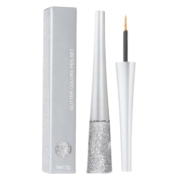Silver Glitter Eyeliner,Liquid Glitter Eyeshadow,Gli-Tter Eyeliner,Silver Eyel-Iner,Quick-Drying,Waterproof And Sweat-Proof,Radiant And Charming,Rich Color,Newbie-Friendly,Effluent Flows Smoothly