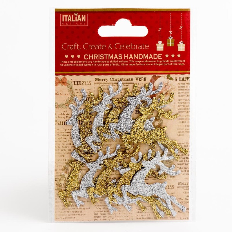Silver Gold Glitter Reindeers Christmas Craft Festive Card Making Decoration (Pack of 12)