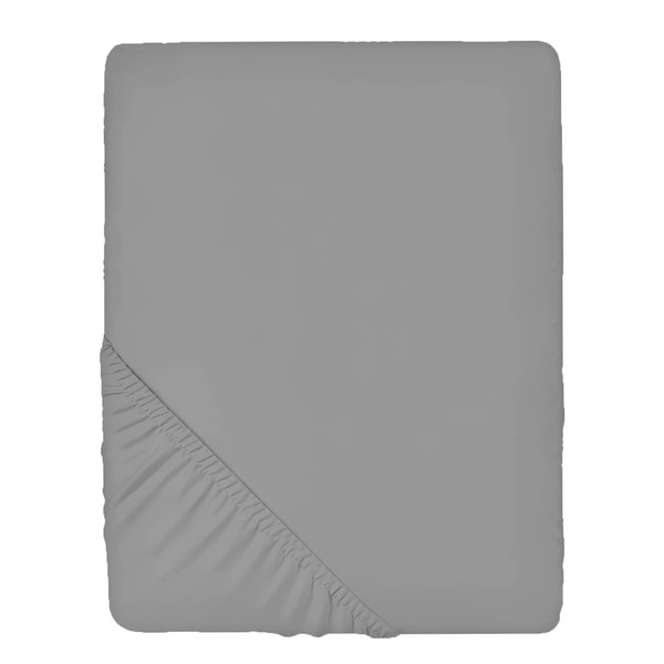 Silver Grey Double fitted sheet Non-iron, Soft, Plain 200TC polycotton bottom bed sheets for thick mattress