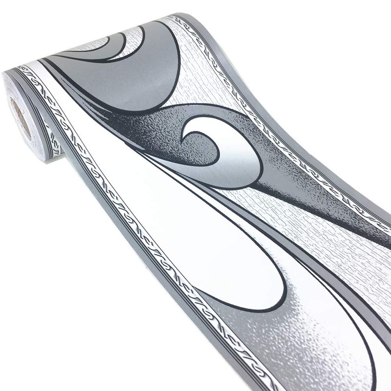 Silver Grey Wave Toteml Wallpaper Border Peel Stick Wall Decal Sticker Bathroom Kitchen Ceiling Backsplash Tiles Border,Waterproof Removable 10cm by 10meters