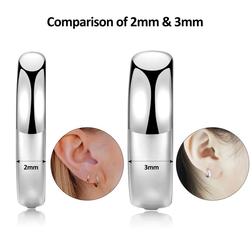 - ♥♥Silver Hoop Earrings♥♥ Simple silver earrings design, Inner diameter: 10mm(0.39''), 2mm Thickness. This dainty cartilage earring hoop are suitable for Cartilage Helix Tragus Piercing Hoop | Perfect for stacking together or wearing alone for a minimalist look.
